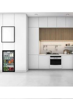 🧊 ثلاجة صغيرة للمشروبات بسعة 90 لتر – باب زجاجي – تحكم بدرجة الحرارة – لون أسود – موديل DLC-32490