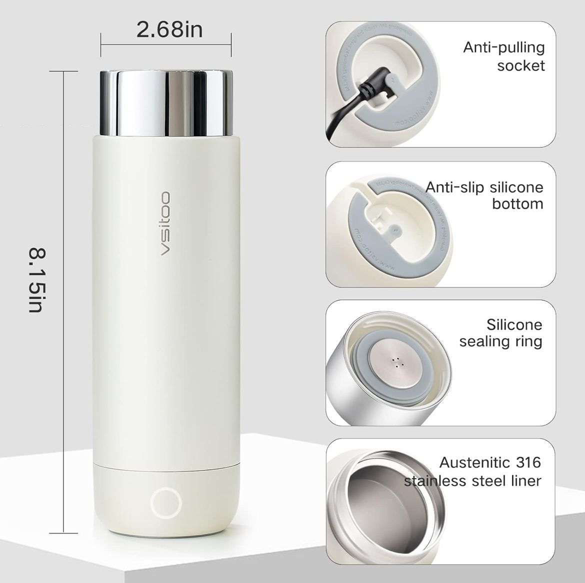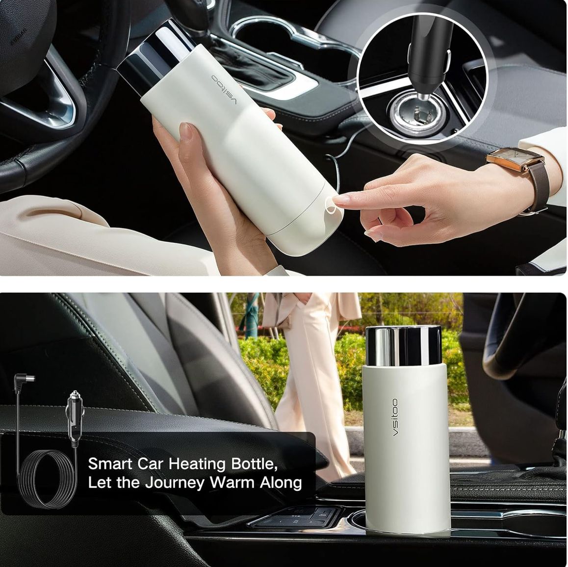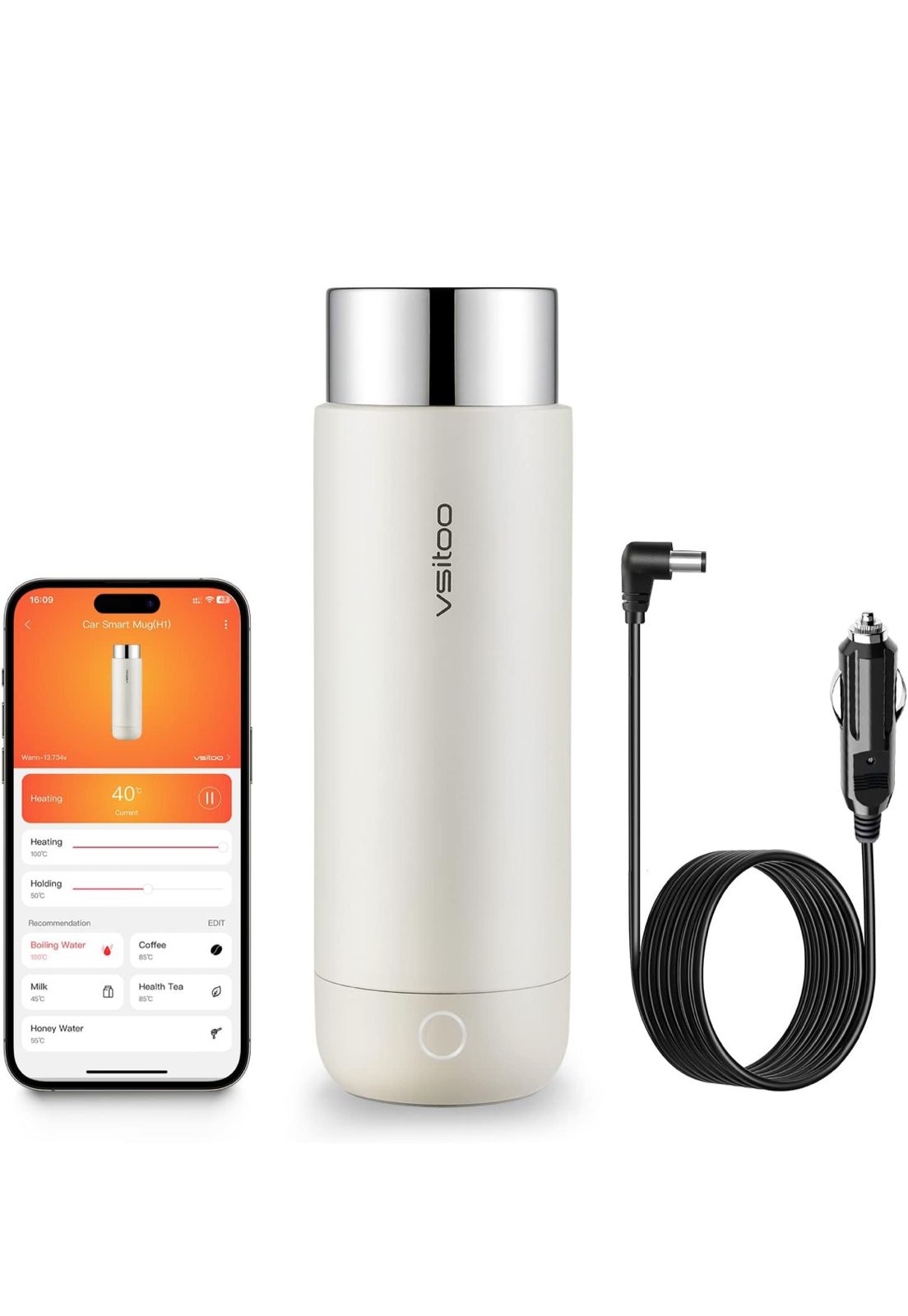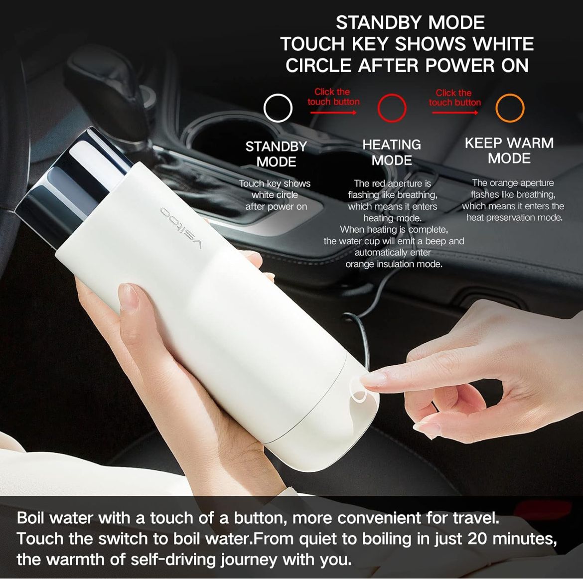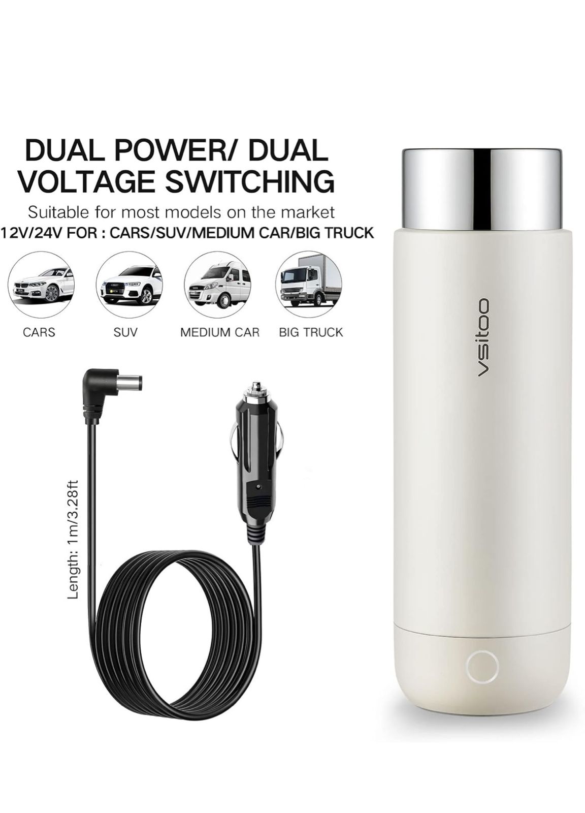 غلاية كهربائية للسيارة من VSITOO – غلاية سفر صغيرة للشاي، غلاية ماء كهربائية بميزة الإيقاف التلقائي والحفاظ على السخونة، مصنوعة من الفولاذ المقاوم للصدأ 306، تعمل بزر واحد لغلي الماء، تعمل بجهد 12V/24V للسيارة.