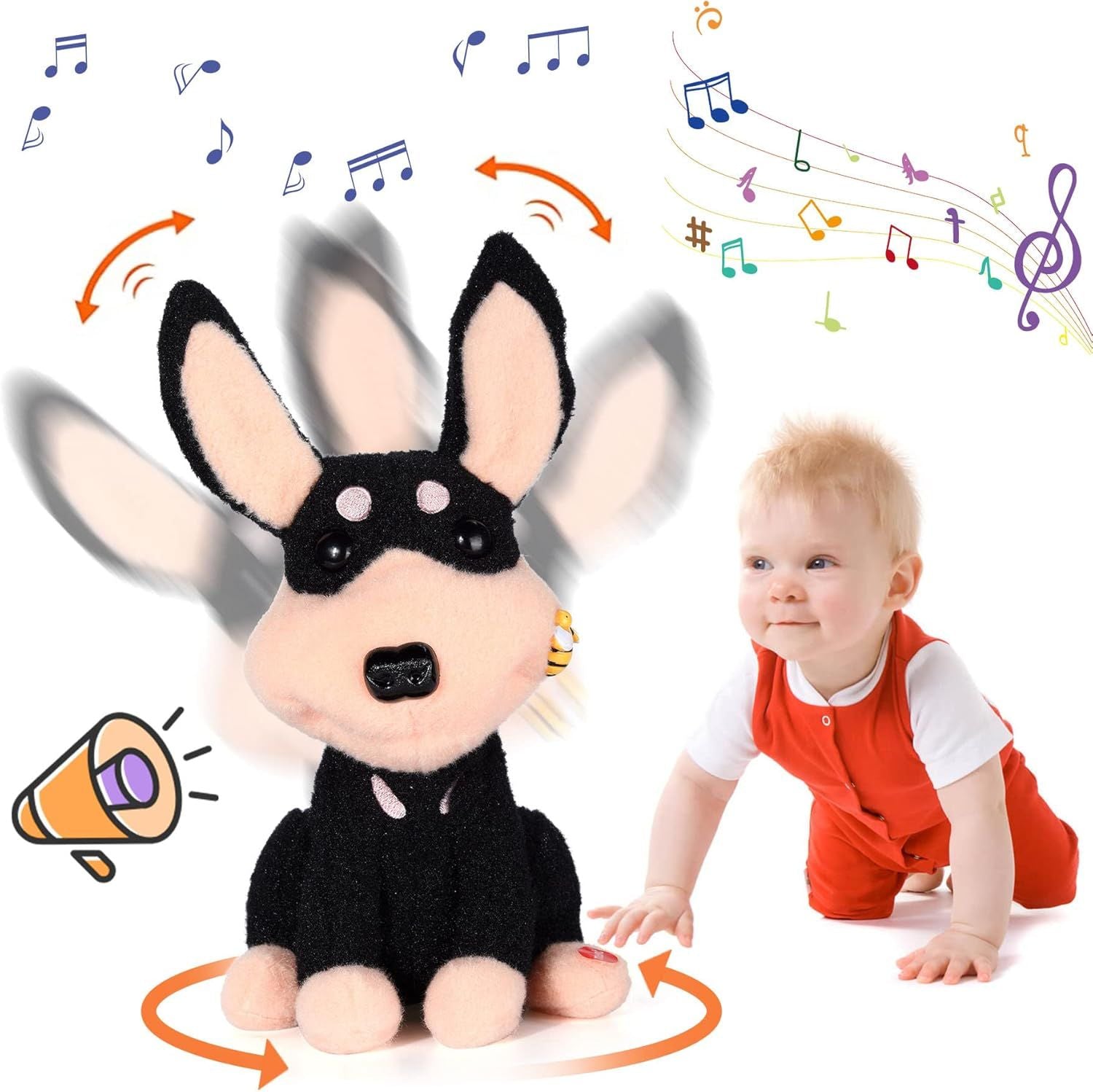 لعبة كلب محشو من MIAODAM، لعبة جرو للأطفال الصغار، ألعاب جرو تهز رأسها للأطفال وتكرر ما تقوله، حيوان دوبرمان محشو يرقص ويغني ويدور حول نفسه وينبح للأطفال الصغار كهدية عيد الفصح