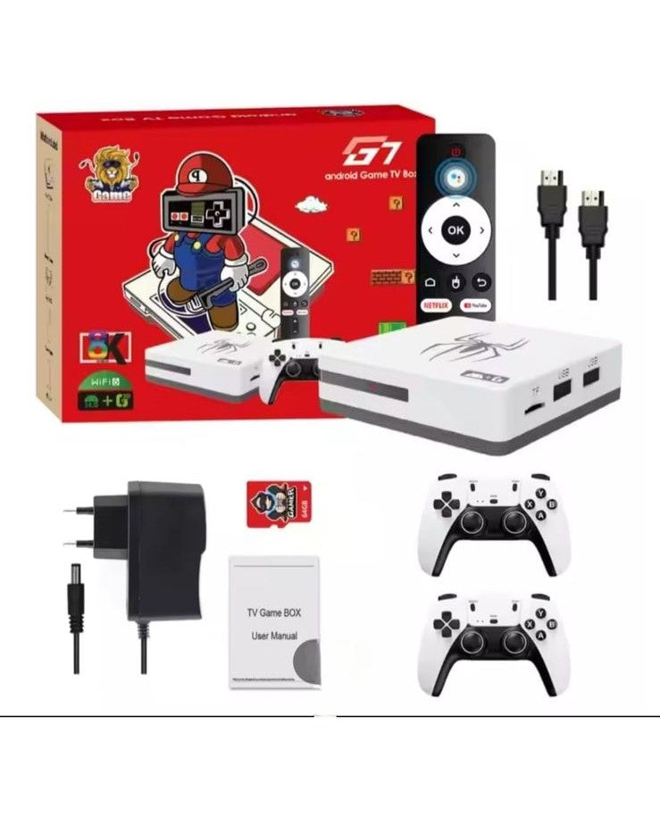 استمتع بتجربة ألعاب مذهلة مع وحدة ألعاب الفيديو المحمولة بدقة 8K التي تعمل بنظام أندرويد. تأتي مع صندوق ألعاب للتلفاز وذراعَي تحكم لاسلكيين لتوفير حرية في اللعب.