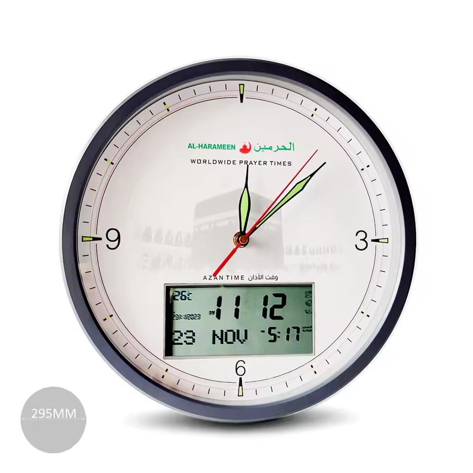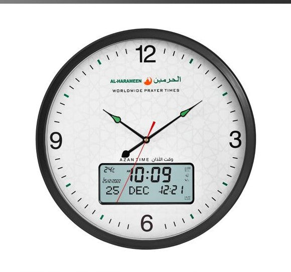ساعة الأذان الحائطية الرقمية التناظرية من الحرمين HA-7056 - اللون الأبيض والأسود