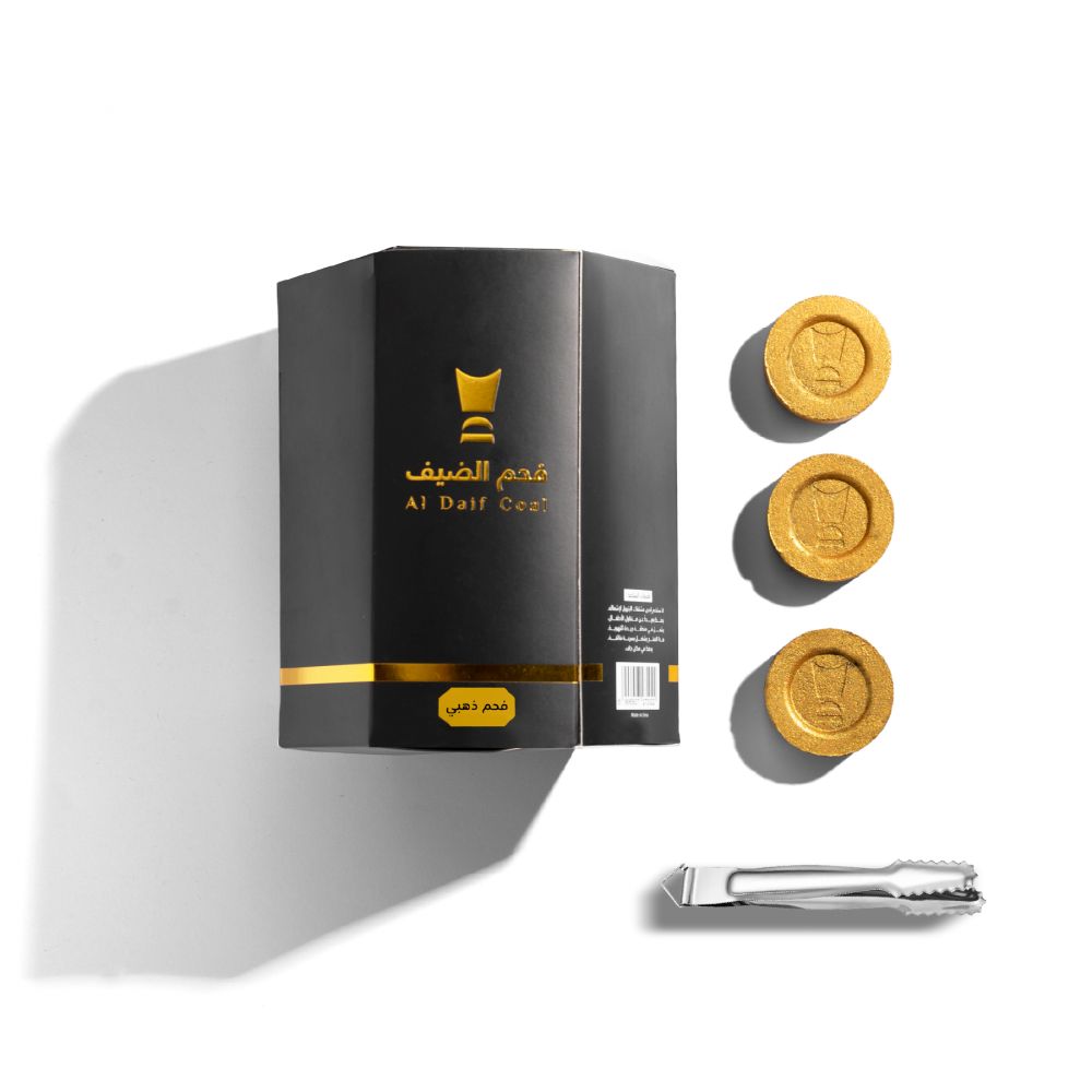 فحم الضيف سريع الاشتعال 50 قرص جامبو ( ذهبي ) 40 مم + ملقاط هدية