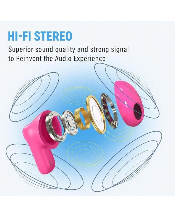 سماعات ANCwear داخل الأذن، بلوتوث 5.3، جودة صوت ممتازة بمحركات 13 مم، تشغيل حتى 22 ساعة، سماعات لاسلكية بالكامل مع حقيبة شحن بشكل حقيبة يد صغيرة، اللون: وردي وبرتقالي