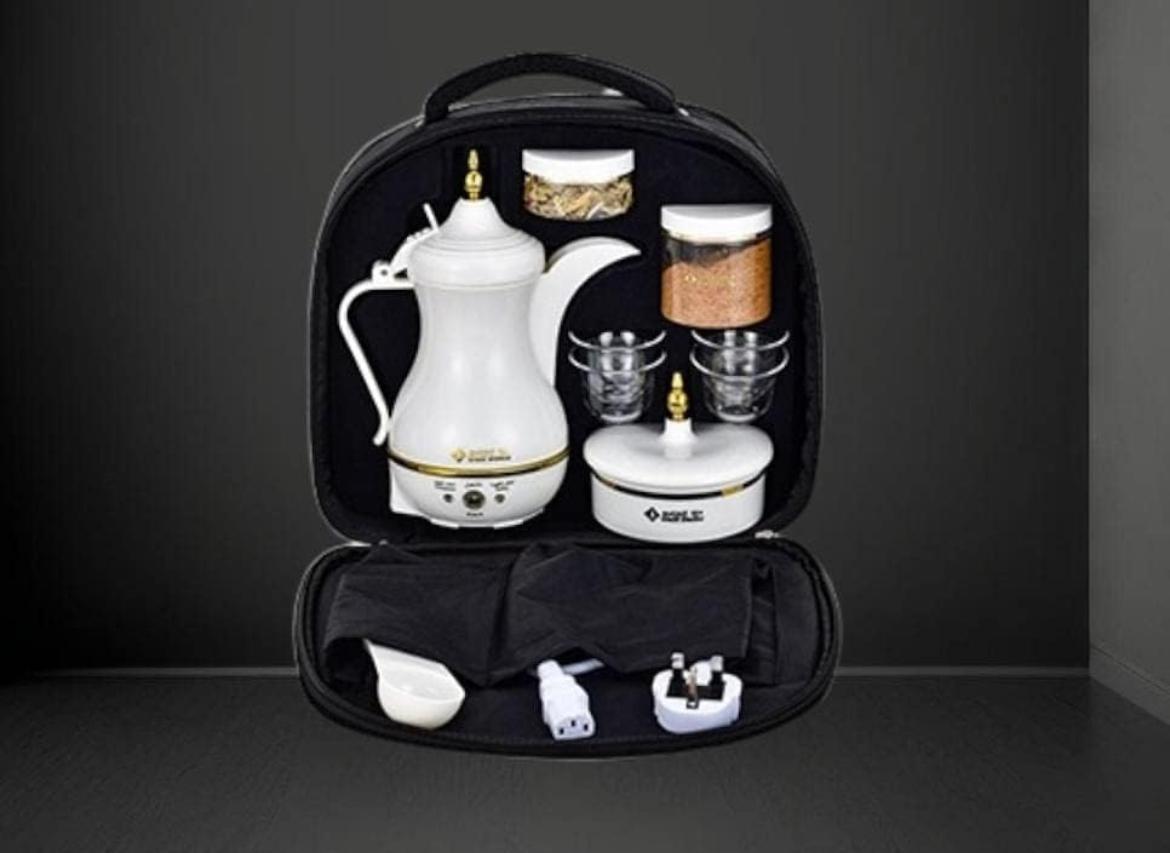 املأ الجزء الصغير من المكيال بالهيل (أو أي توابل إضافية مثل الزعفران وغيرها)، ثم أضفه إلى الدلة وانتظر حتى سماع صفارة الإنذار التي تشير إلى أن القهوة أصبحت جاهزة، مع إضاءة زر التشغيل باللون الأصفر.