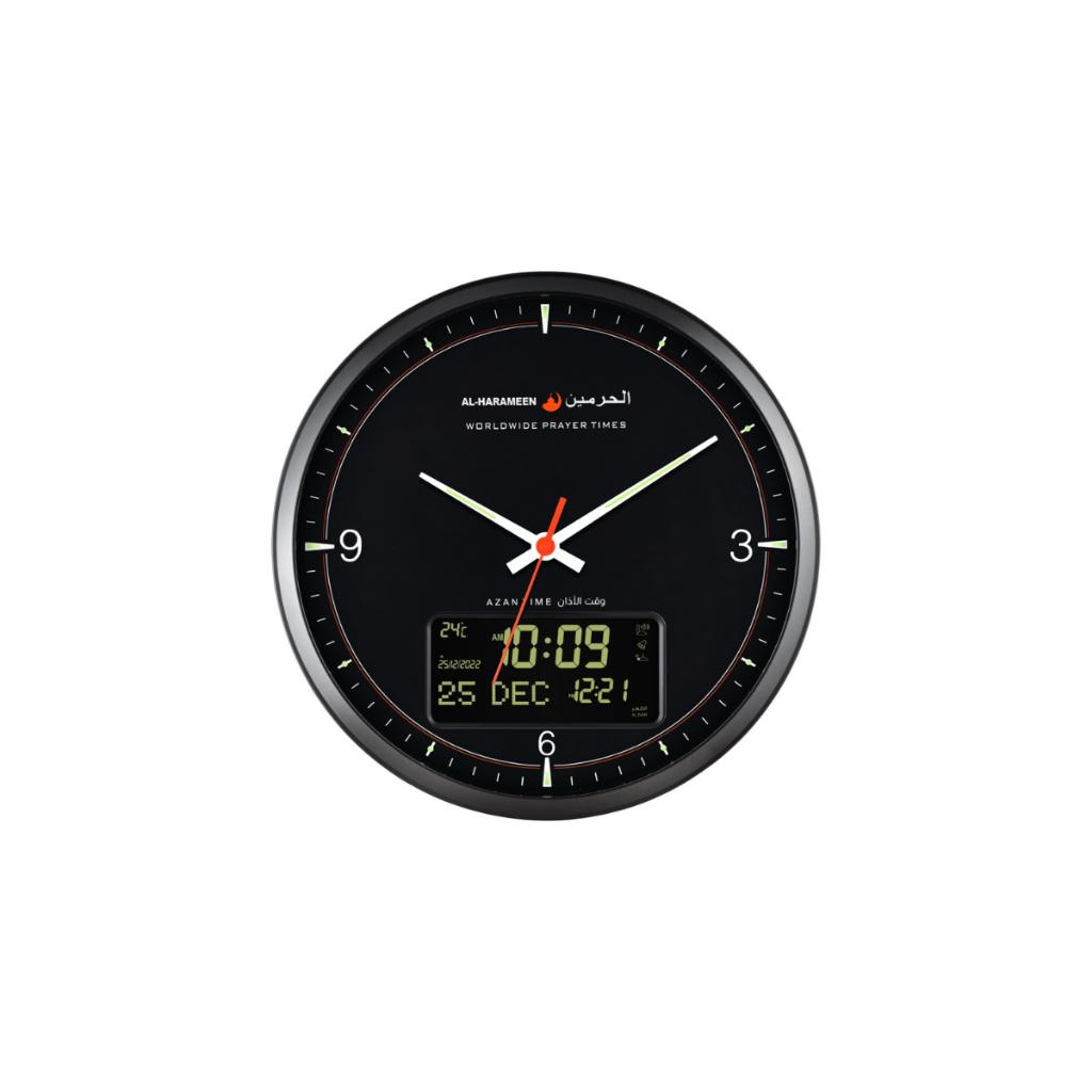 ساعة الحائط بالأذان التناظرية من الحرمين HA-7054 (أسود وأبيض)