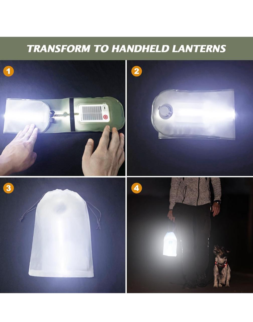 Qoolife 60cm Solar Camping Lights | Rechargeable with 2000mAh Battery | Foldable and Inflatable | IP66 Waterproof | LED Tube Light for Camping and Outdoor Use