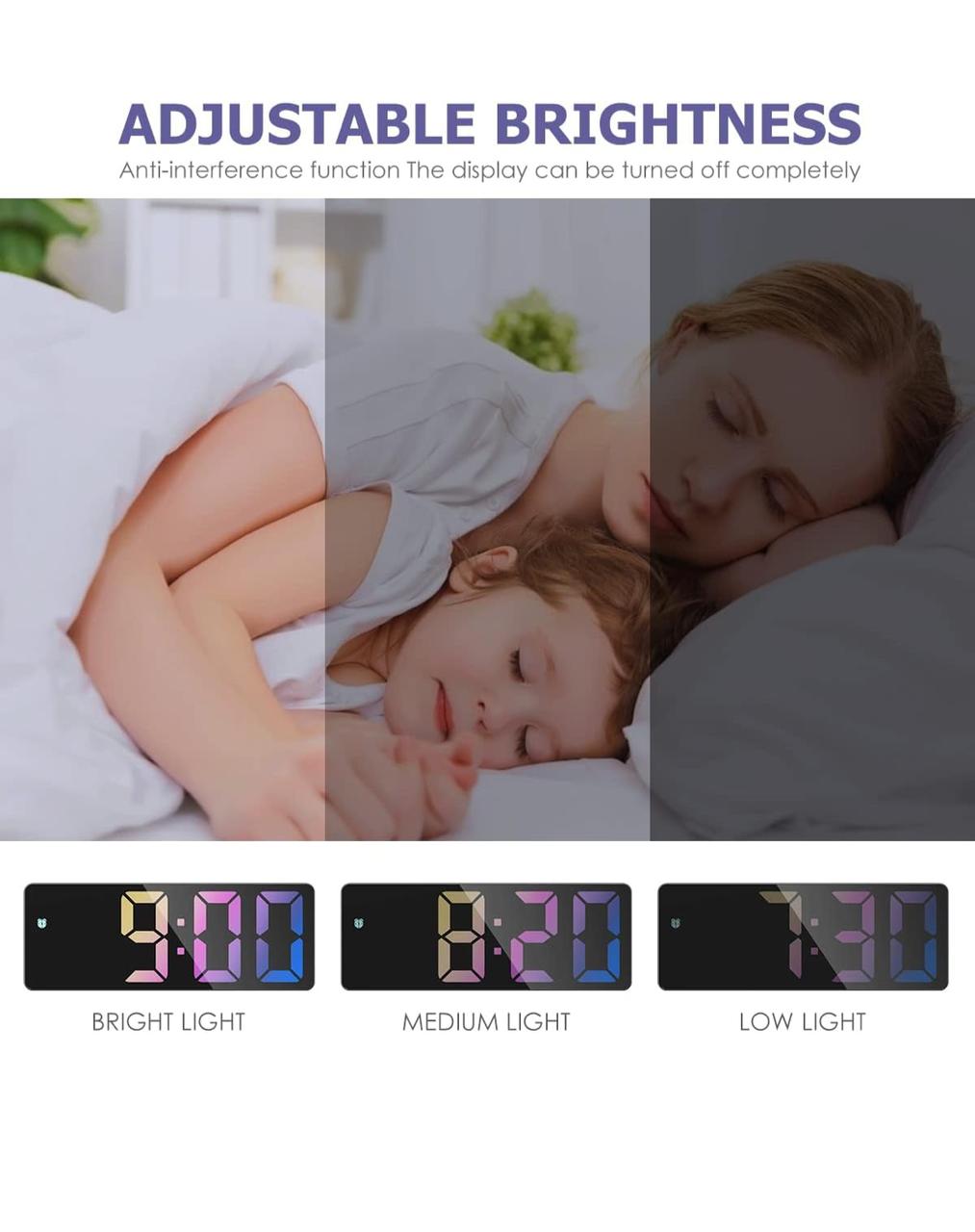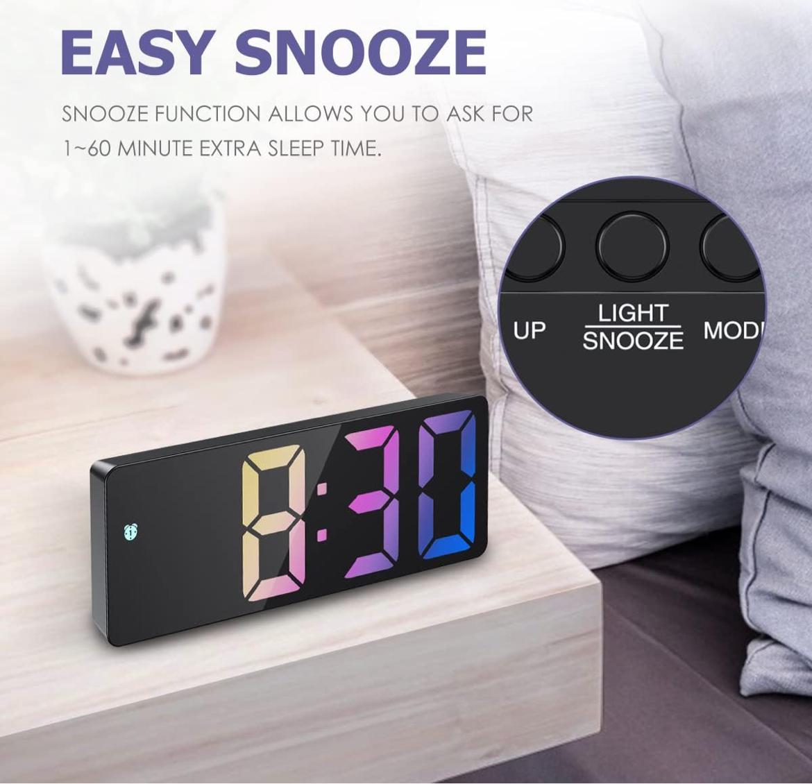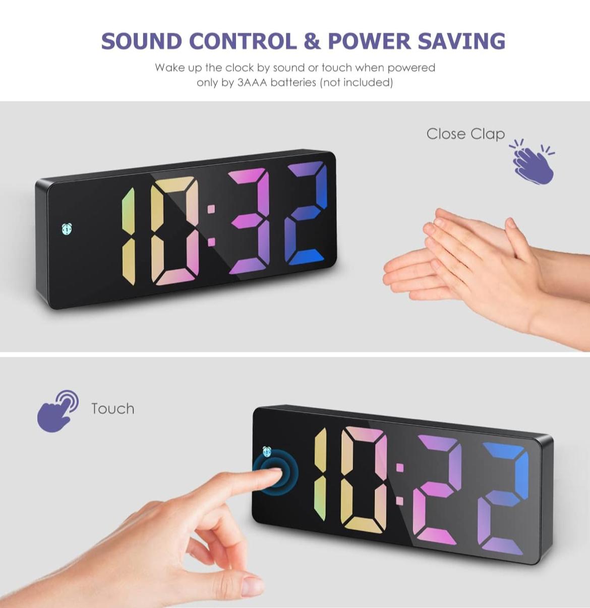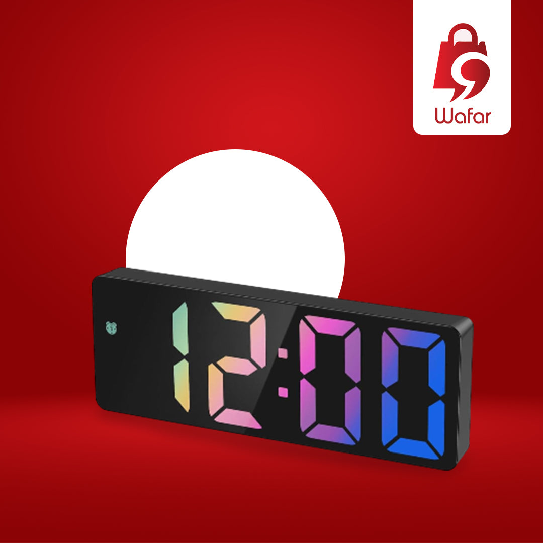 ساعة منبه رقمية ملونة بشاشة LED كبيرة وتحكم صوتي