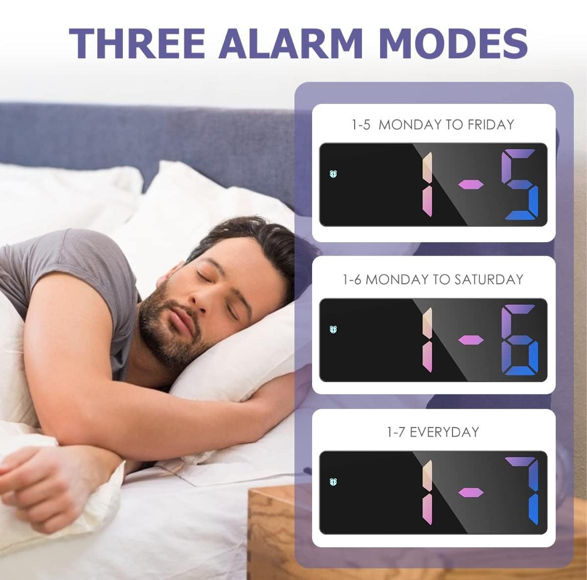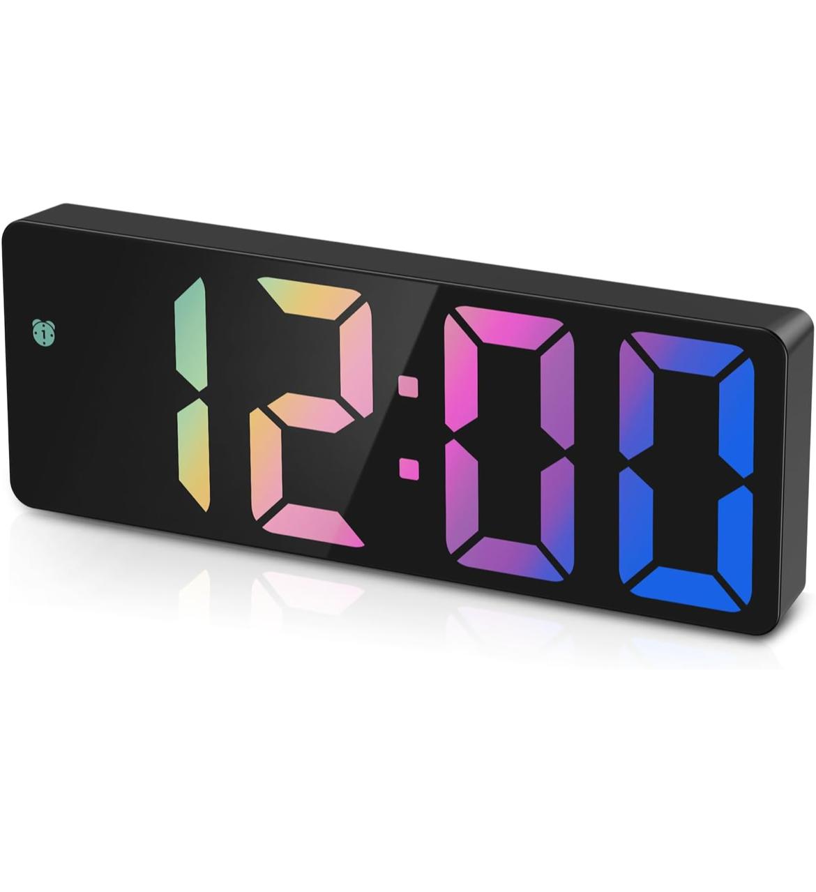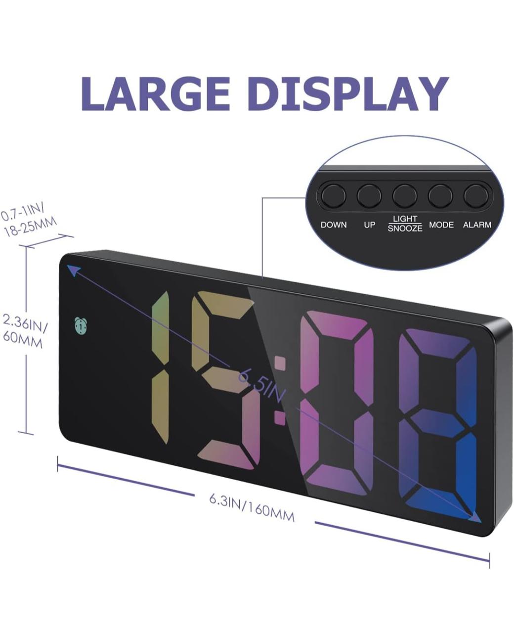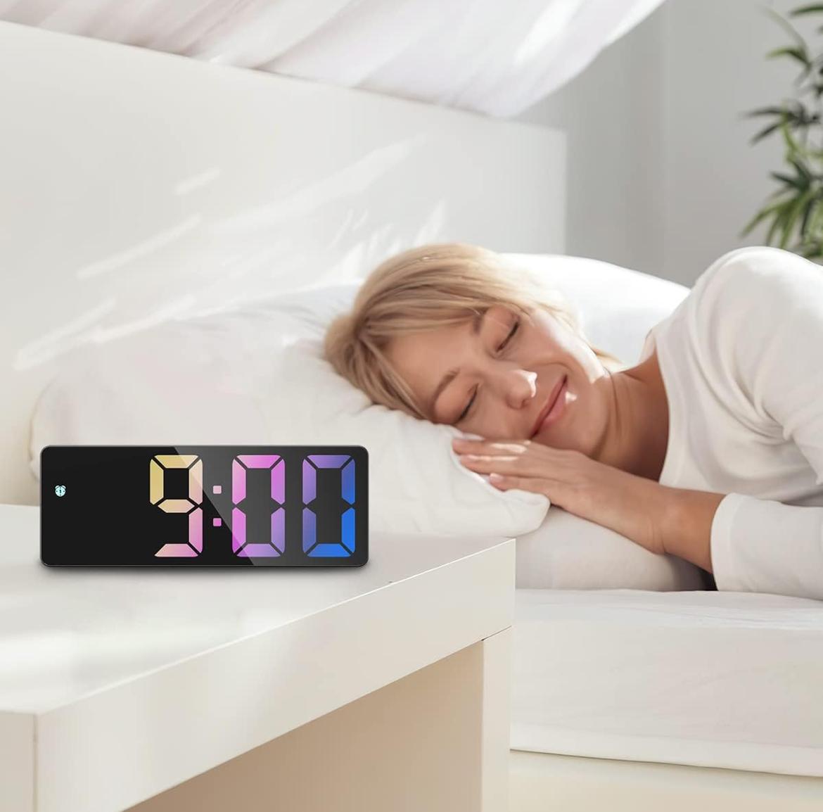 ساعة منبه رقمية ملونة بشاشة LED كبيرة وتحكم صوتي