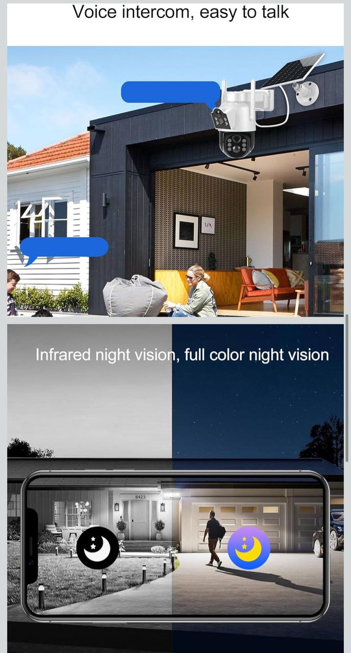 كاميرات المراقبة الخارجية بالطاقة الشمسية من Cryfokt، بدقة 1080P وعدسة مزدوجة بدقة 2 ميجابكسل، كاميرا شمسية دوارة PTZ مزودة بإنذار ذكي عبر مستشعر PIR، وتدعم التحدث ثنائي الاتجاه، مزودة بلوح طاقة شمسية، للمراقبة المنزلية