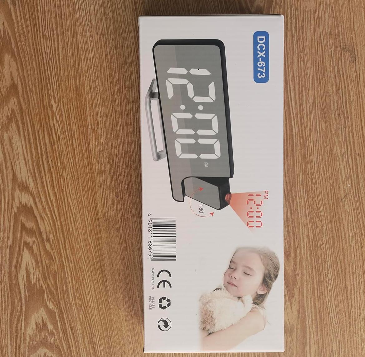 ساعة منبه Cuteefun مع بروجيكتور، ساعة LED بإسقاط دوّار 180 درجة، ساعة بجانب السرير مع عرض درجة الحرارة، غفوة، 3 مستويات سطوع، عرض 12/24 ساعة، ساعة رقمية بيضاء لغرفة النوم
