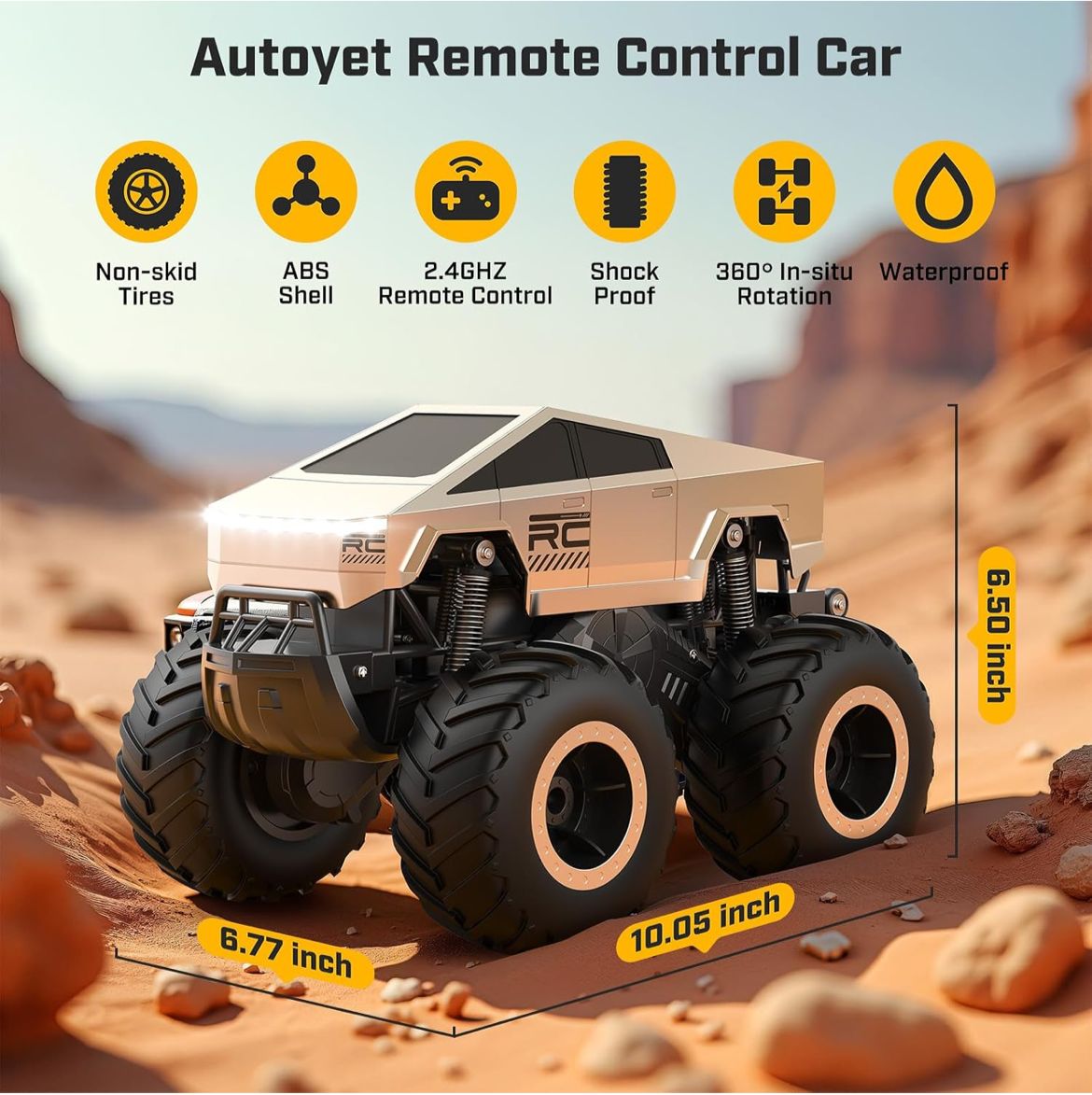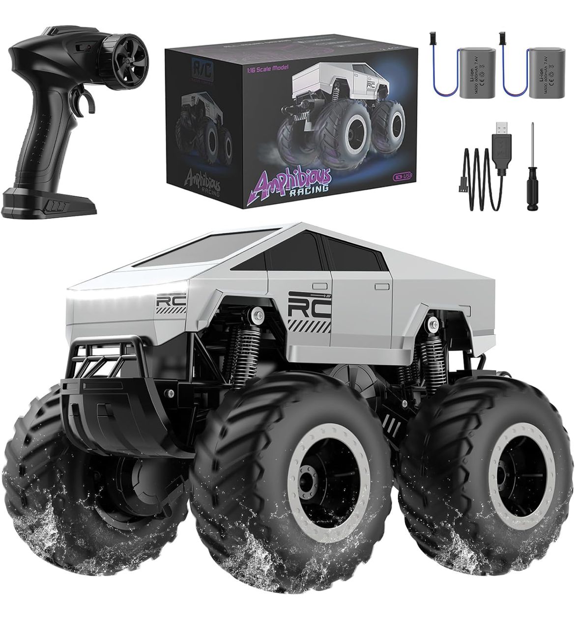 سيارة سايبرتراك بالتحكم عن بُعد للأطفال بعمر 6 سنوات فما فوق – سيارة مقاومة للماء على شكل شاحنة مونستر، 4×4 لجميع التضاريس، بيك أب برمائي، بمقياس 1:16، تردد 2.4 جيجاهرتز – هدية عيد ميلاد أو كريسماس 2025 للأولاد