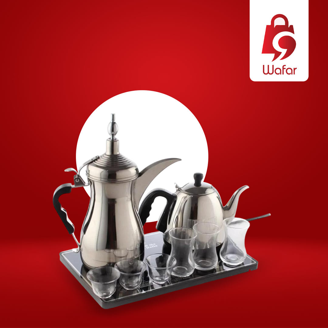 دلة قهوة وتي - دلة الخليج 94845 بدون أي خبرة وبلمسة زر واحدة، يمكن تحضير الشاي والقهوة في غضون 15 دقيقة - شاشتان رؤية للشاي والقهوة مع منبه للحالة. المحتويات - شكل جديد وانسيابي مناسب للجلوس والمكتب والسفر، إغلاق تلقائي عند الانتهاء من القهوة والشاي، المحتويات: قهوة دلة سعة 1 لتر وقاعدة إلكترونية سعة 1 لتر، مقياس للقهوة والشاي و6 أكواب قهوة و3 أكواب من الشاي و4 علب من الحليب والهيل والشاي والسكر - ضمان لمدة عامين من الوكيل.