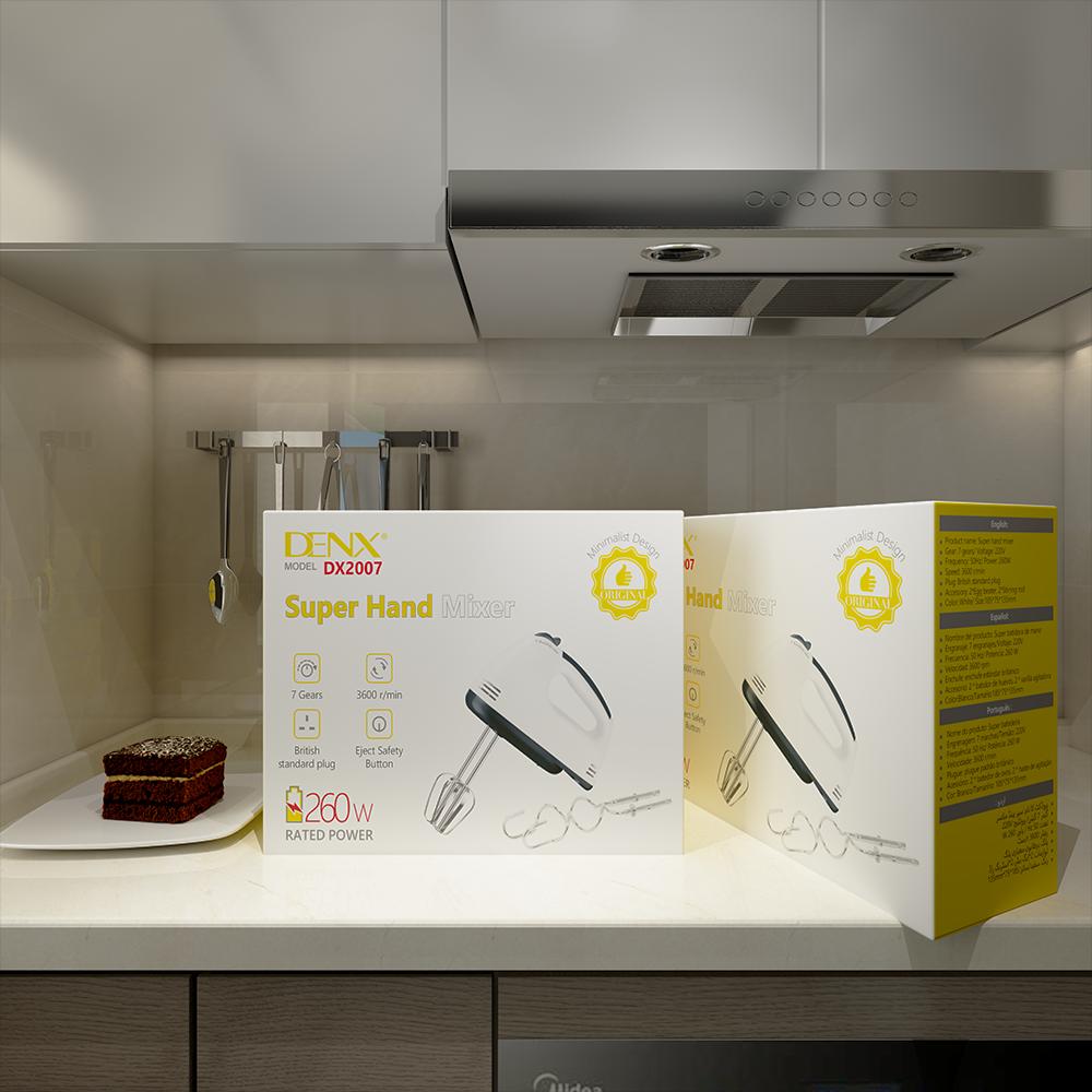 ارتقِ بتجربة الخَبز الخاصة بك مع الخلاط اليدوي الكهربائي Denx DX2007. هذه الأداة متعددة الاستخدامات مصممة لسهولة الخلط والخفق والعجن، ما يجعلها رفيقًا أساسيًا لكل محب للخبز في المنزل.