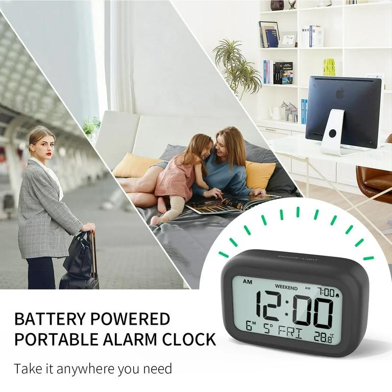 الساعة الرقمية المنبهة مع التاريخ ودرجة الحرارة، تعمل بالبطارية، شاشة LED بحجم 3.5 بوصة – تصميم عصري وصغير يناسب غرفة النوم أو المعيشة، باللون الأسود (تتضمن البطارية)