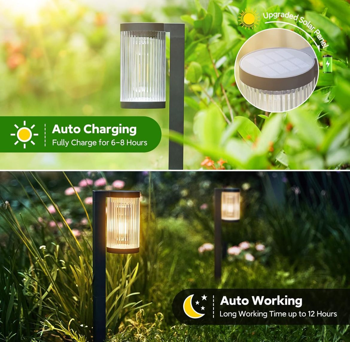 أضواء الممر الشمسية من ELECLINK للاستخدام الخارجي، إصدار مطور – إضاءة شمسية فائقة السطوع تدوم حتى 12 ساعة، مقاومة للماء بمعيار IP65، أضواء حديقة شمسية للاستخدام الخارجي في الساحة أو الحديقة أو الممر، باللون الأسود