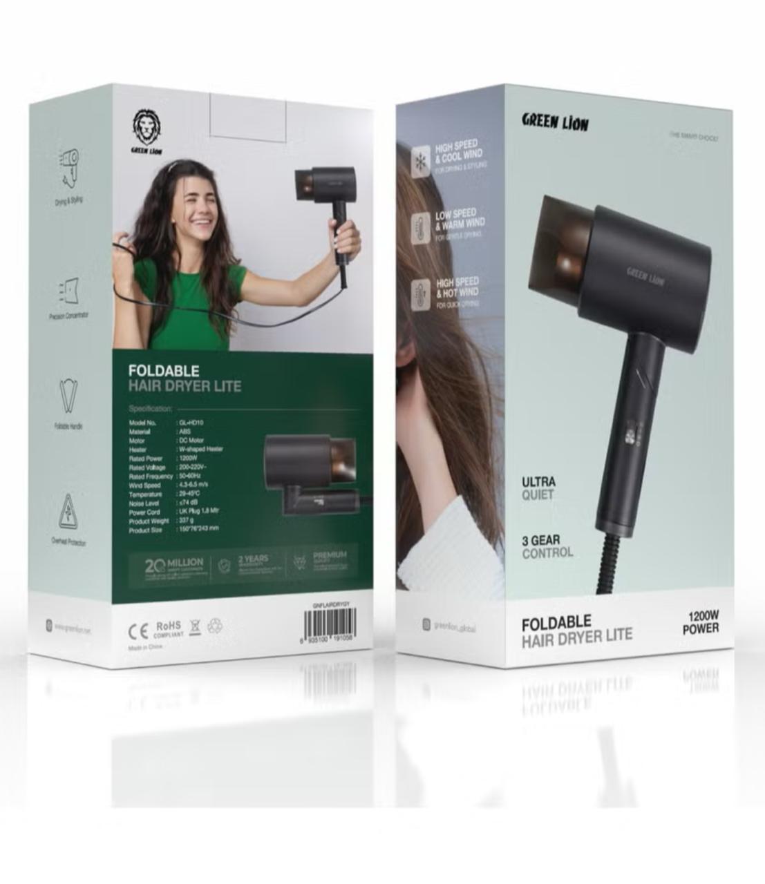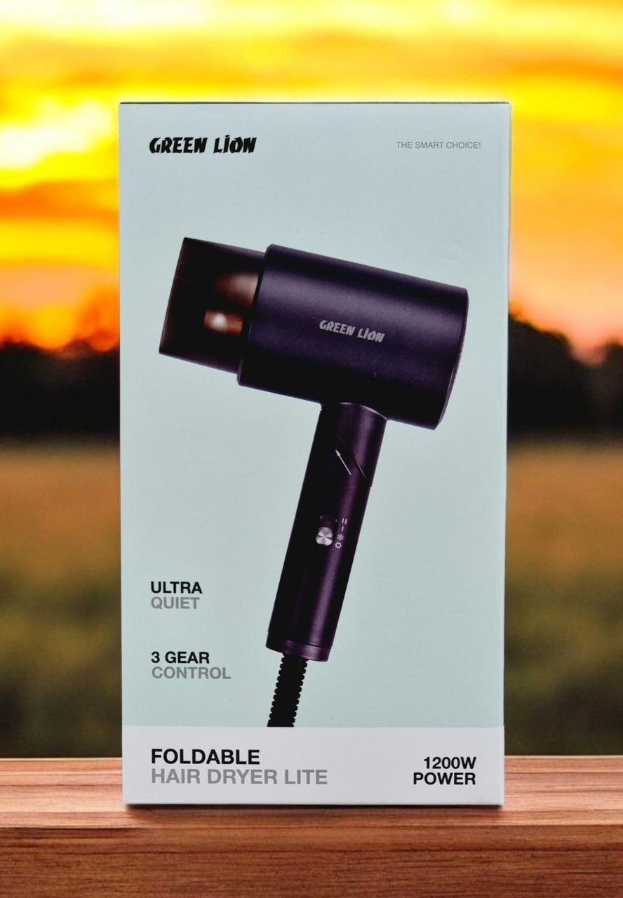 مجفف شعر قابل للطي لايت 1200 واط / مقبض قابل للطي / هواء ساخن وبارد / للتجفيف والتصفيف / حماية من السخونة الزائدة / هادئ جدًا / مدمج / خفيف الوزن / مناسب للسفر - أسود