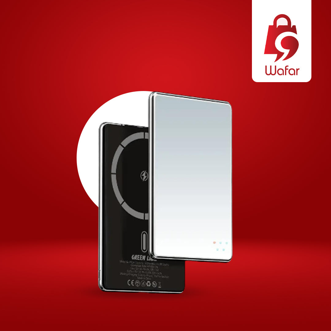 باور بانك Green Lion بتصميم مرآة يجمع بين الجمال الأنيق والأداء العالي. يتميز هذا الشاحن المحمول فائق النحافة والخفة بجسم مصنوع من الألمنيوم والزجاج مع سطح مرآة أنيق، ليقدم مظهرًا راقيًا ووظيفة عملية في آنٍ واحد.