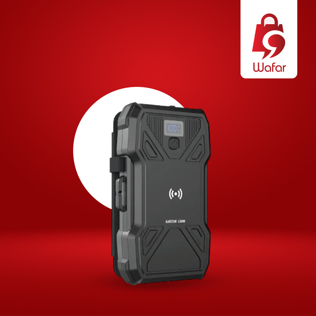 باور بانك Green Lion الشمسي المزوّد بـ 5 ألواح شمسية وسعة 20000 مللي أمبير يجمع بين الاعتماد على الطاقة الشمسية وكفاءة الشحن العالية. مصنوع من مزيج قوي من مواد ABS وPC، ويوفر طاقة كافية لشحن جميع أجهزتك الإلكترونية أثناء التنقل.