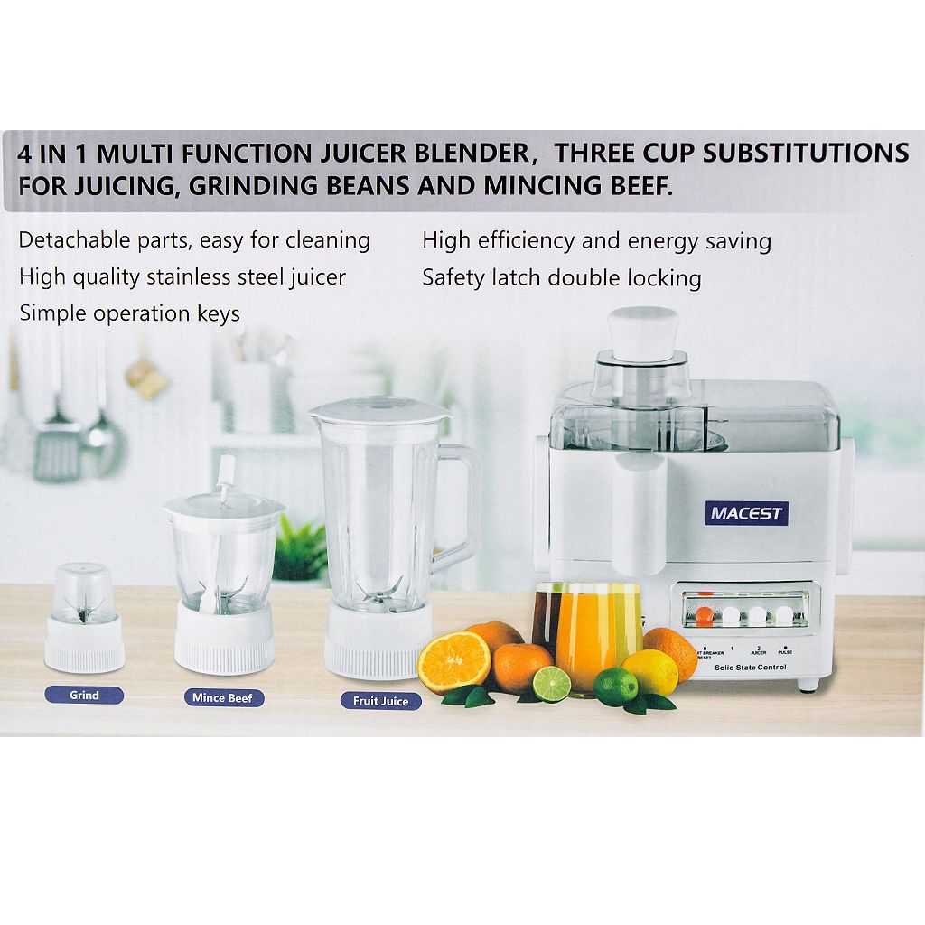 1 × خلاط عصارة كهربائي 4 في 1 بقوة 400 واط من Macest – أبيض – موديل MC-59105