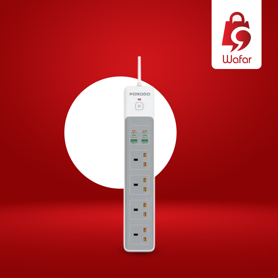 4 منافذ كهربائية + 4 منافذ USB للشحن السريع