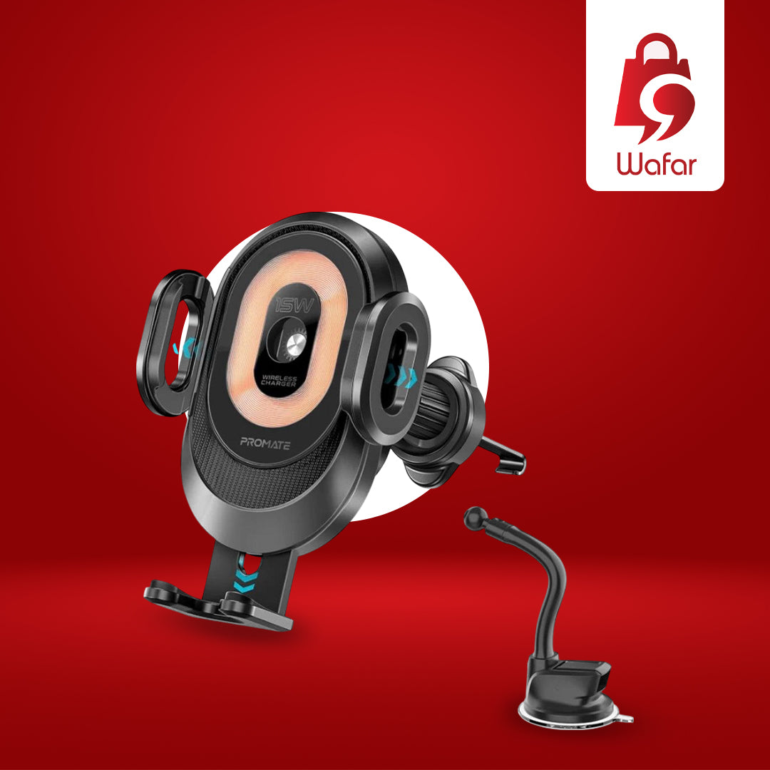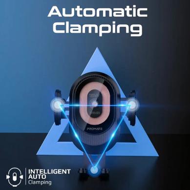 PROMATE 15W Wireless Car Charger with Transparent Design and Automatic Clamping