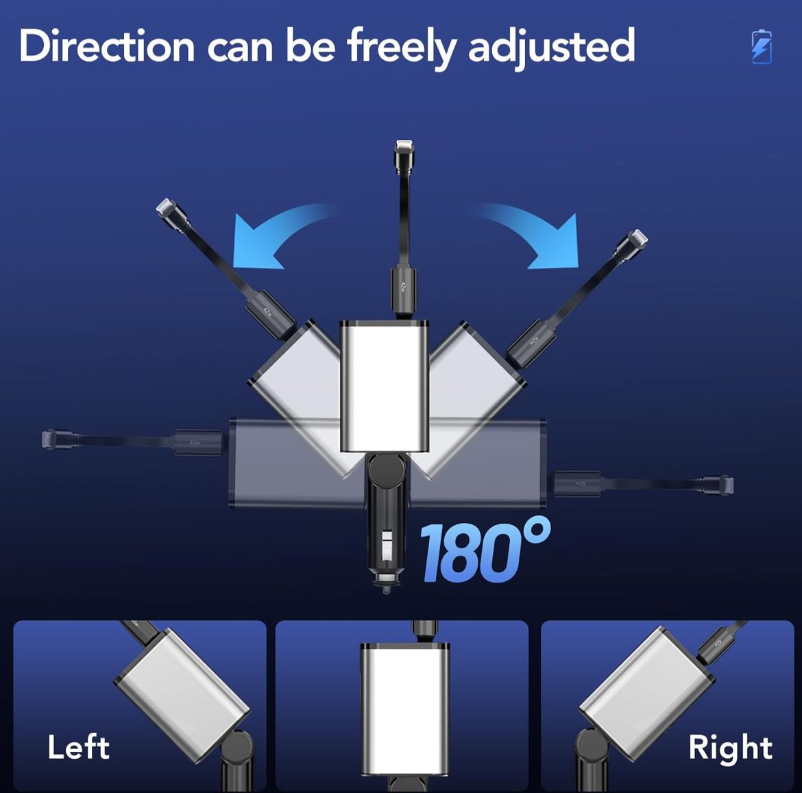شاحن سيارة قابل للسحب 4 في 1، متوافق مع iPhone 16