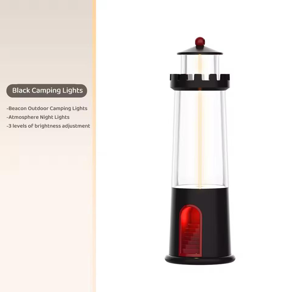 منارة محمولة أ أضواء التخييم tmosphere مصباح قمري العارض المنارة ديكور عكس الضوء السنانير القابلة لإعادة الشحن في الهواء الطلق الإبداعية ديسمبرأضواء التخييم جو منارة بيضاء/سوداء