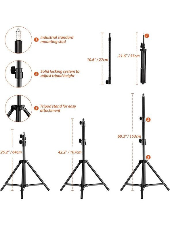 يحتوي الطقم على: 2 ضوء استوديو، 2 حامل إضاءة، 2 محول طاقة، 2 أنبوب مرن. نحن نلتزم بتقديم منتجات عالية الجودة وخدمة عملاء مميزة. لا تتردد في التواصل معنا لأي استفسارات تتعلق بالمنتج.
