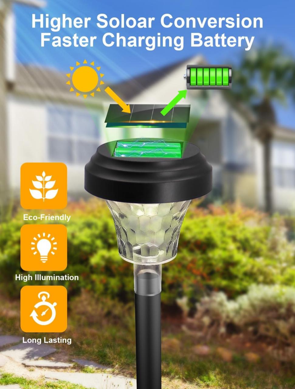 تأتي المصابيح الشمسية الخارجية بمفتاح خارجي مريح وإمكانية ضبط الارتفاع. ويتميز التصميم الحاصل على براءة اختراع بنمط زهري جذاب يُظهر تأثيرًا ضوئيًا أوسع. ولتحقيق إضاءة أقوى من نظيراتها، استخدمنا مصابيح LED عالية الطاقة وعدسات عالية الشفافية.